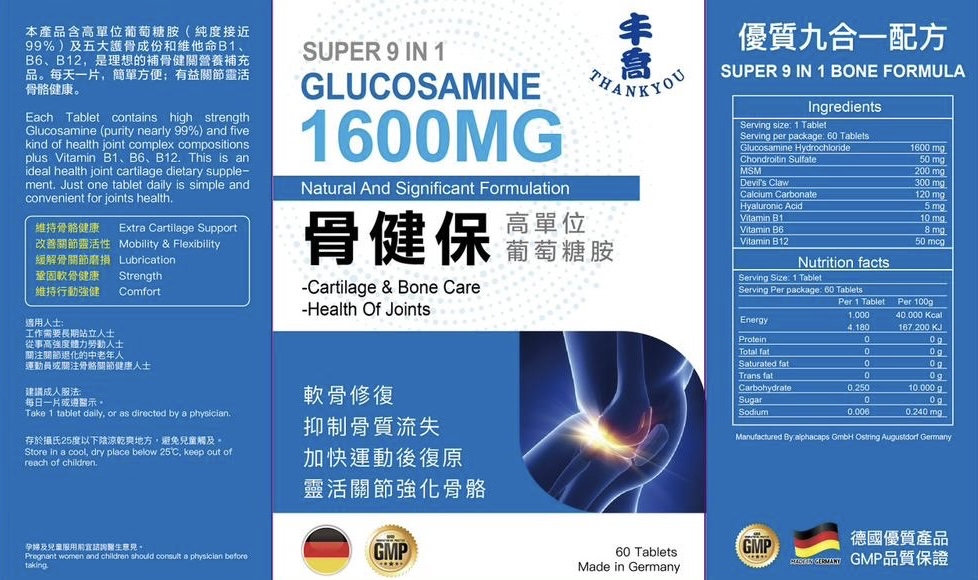 拎到好好既優惠!!吾係成日有折扣架🤭🤭 工作需要長期站立,體力勞動既人 中年人老年人 都好岩呢款產品🤫 都市人好繁忙,補充品對身體好重要 保持每日既吸收,日子有功,效果就見啦 食用方法 : 每日一片 德國🇩🇪制造 葡萄糖氨對補充骨骼🦴係重要既一環 裡面仲有維他命 B1 B6 B12 🙀🙀全效保充身體需要🙀🙀🙀每個月只需$2xx 平過打一枝骨針好多呀😆😆😆 6個月打一次既骨針要$3xxx !!! 夠食好多個月既骨健保啦🤫🤫